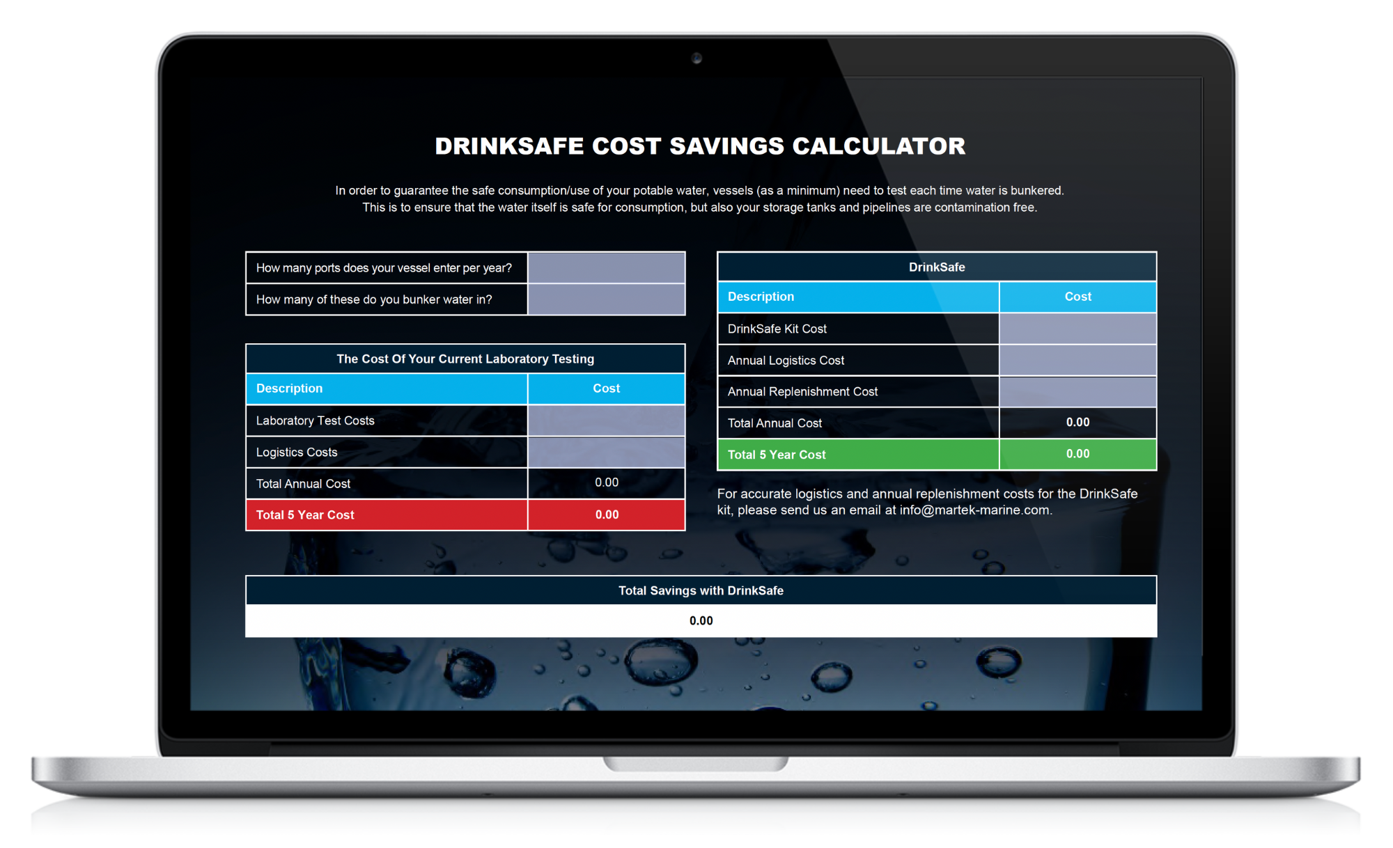 Download our DrinkSafe Savings Calculator and see for yourself how much you can save when it comes to potable water testing.